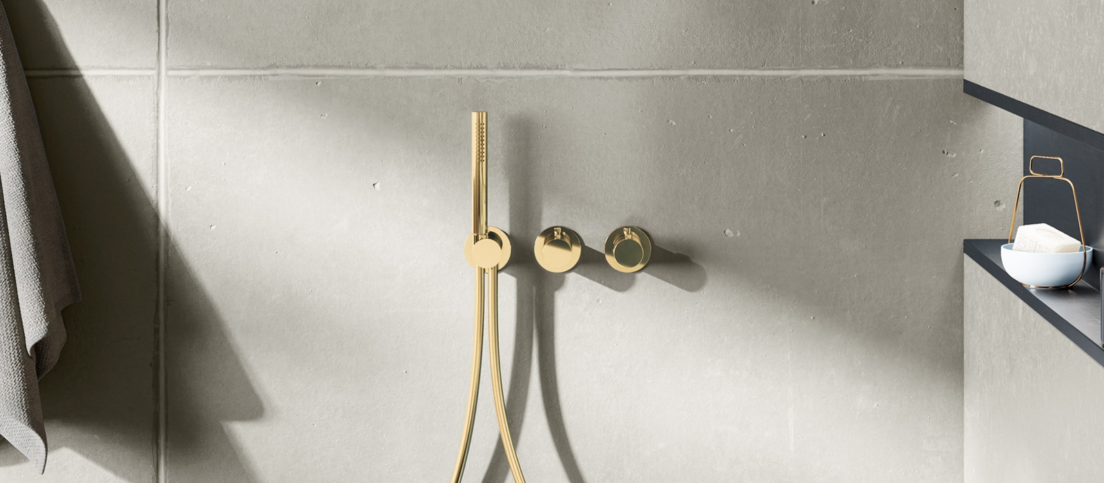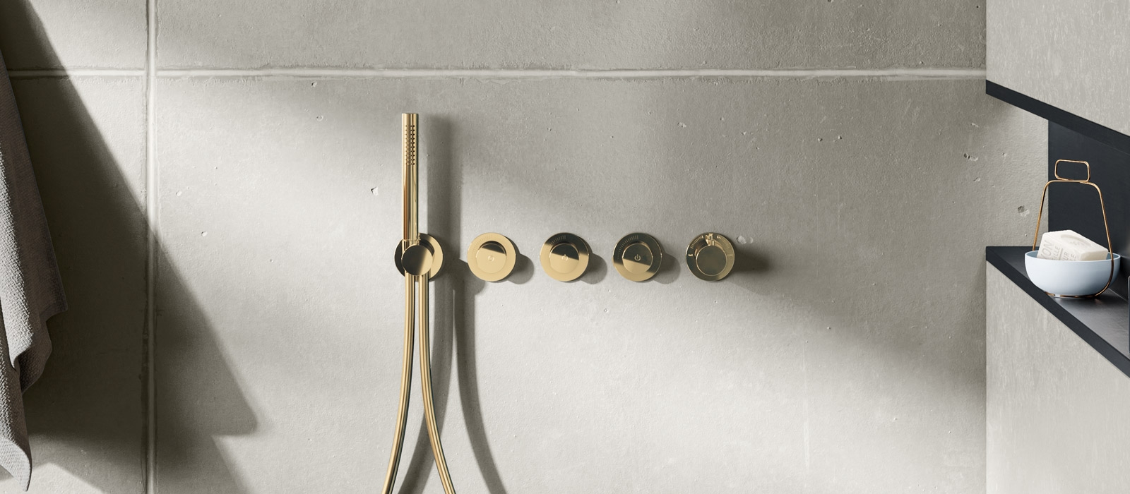 The unusual combination options are particularly attractive with the PVP gold finish. Lush green, deep dark blue or materials such as marble and natural stone provide the basis for a dream bathroom that will be the envy of everyone. By the way: If you want the MODUL7 PVD gold version for the washbasin or bath, you can combine it with the PVD gold rain showers from the herzbach LIVING SPA portfolio to create a golden wellness bathroom.