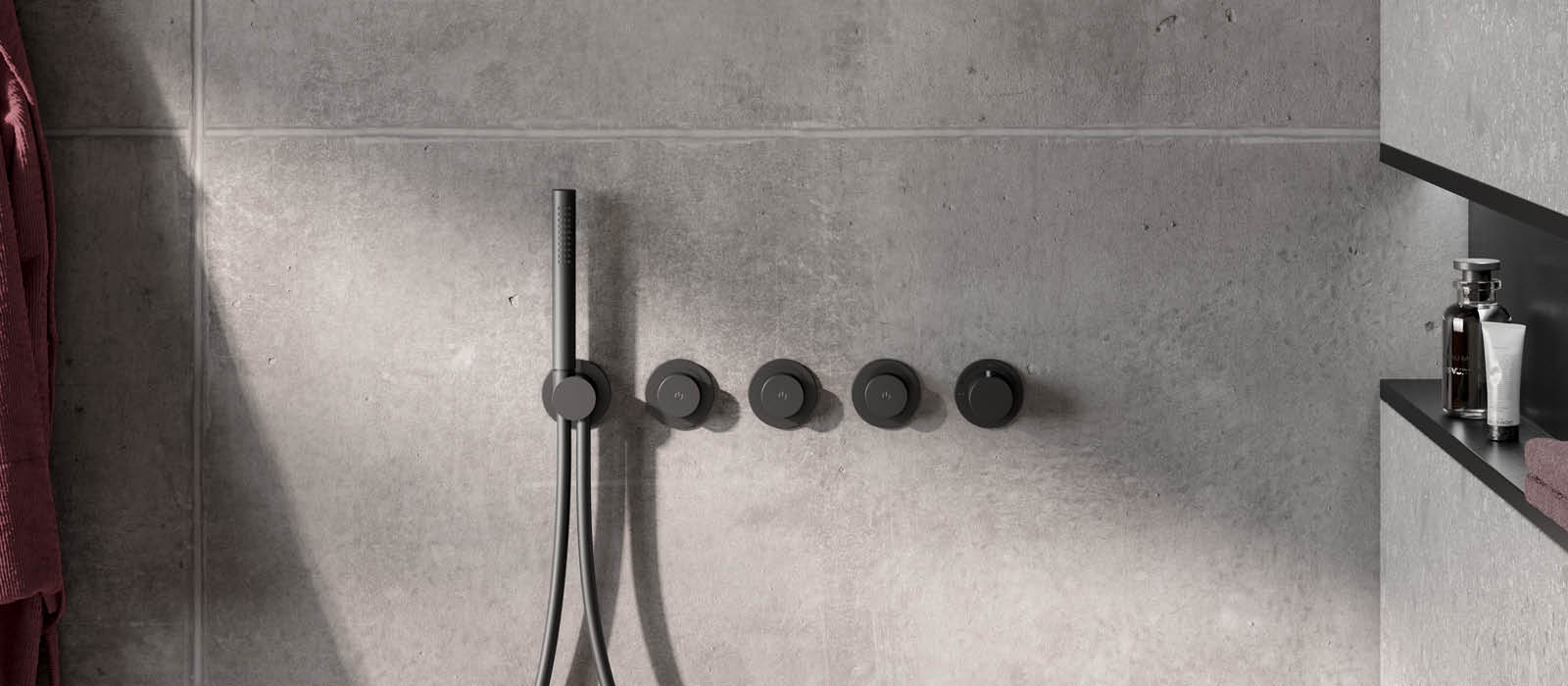 Ob nun in der Dusche mit Regenbrause und Stabhandbrause oder als einfaches Waschtisch-Set – MODUL7 in Schwarz matt ist immer ein Hingucker.