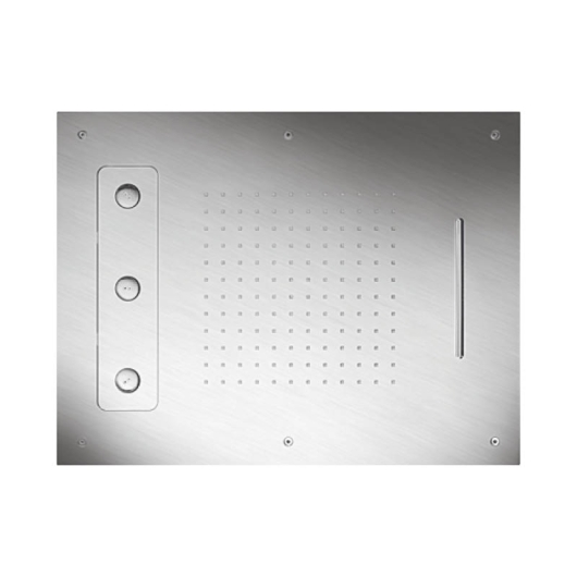 ![]()  | 11.630480.2.09 LIVING SPA Deckeneinbau-Regenbrause Multifunktion 3 eckig Strahlart: Regen / Spin-Jet / Schwall Abmessung 630 mm x 480 mm Einbaurahmen zum Deckeneinbau Clean-Effect Durchflussmenge: Regen ca. 15 l/min bei 3 bar Spin-Jet ca. 13 l/min bei 3 bar Schwall ca. 15 l/min bei 3 bar Oberfläche Edelstahl matt gebürstet UVP 4.195,00 € zzgl. MwSt.