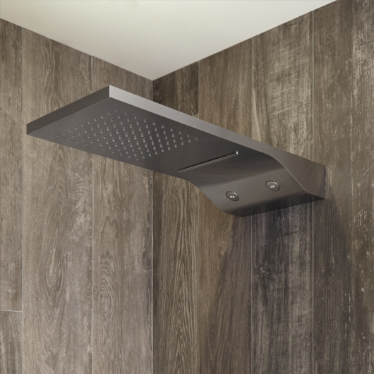 ![]()  | 11.662500.2.09 LIVING SPA Wand-Regenbrause Multifunktion 3 eckig Strahlart: Regen / Spin-Jet / Schwall Abmessung 587 mm x 270 mm Aufbauhöhe Front 20,5 mm / Wandseitig 75,5 mm mit Befestigungsmaterial zur Aufputz-Wandmontage Clean-Effect Durchflussmenge: Regen ca. 14 l/min bei 3 bar Spin-Jet ca. 10 l/min bei 3 bar Schwall ca. 15 l/min bei 3 bar Oberfläche Edelstahl matt gebürstet UVP 3.776,00 € zzgl. MwSt.