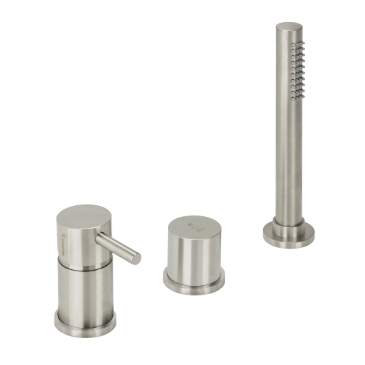 ![]() | 17.022025.2.09 DESIGN iX Dreiloch-Wannenarmatur für Fliesen- oder Wannenrandmontage Flexschlauch mit 1/2" IG zum Anschluss einer externen Wannenbefüllung LOGIC-SoftEmotion-Keramikkartusche Drehumsteller ausziehbare Stabhandbrause Nylon-Brauseschlauch eigensicher gegen Rückfließen inklusive Befestigungsmaterial erforderliche Lochbohrungen 35 mm Oberfläche Edelstahl matt gebürstet UVP 988,00 € zzgl. MwSt.