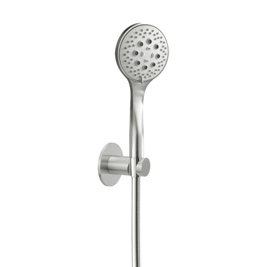 ![]()  | 17.914300.1.09 LIVING SPA Wannenset seven Handbrause Multifunktion Ø 100 mm Durchflussmenge ca. 15 l/min bei 3 bar Konuswandhalter starr Formgebung rund Rosette Ø 70 mm Brauseschlauch 1/2” x 1600 mm x 1/2” Drehkonus Oberfläche Edelstahl matt gebürstet UVP 445,00 € zzgl. MwSt.