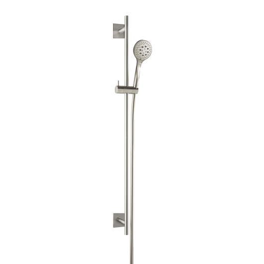 ![]()  | 17.922800.2.09 LIVING SPA Dusch-Wandstangenset seven Handbrause 100 mm Multifunktion Durchflussmenge ca. 15 l/min bei 3 bar Länge 900 mm, Ø 20 mm Rosetten 70 mm x 70 mm Konusgleiter stufenlos höhenverstell- und neigbar Formgebung rund Silberflex-Brauseschlauch 1/2" x 1600 mm x 1/2" Drehkonus Oberfläche Edelstahl matt gebürstet UVP 658,00 € zzgl. MwSt.