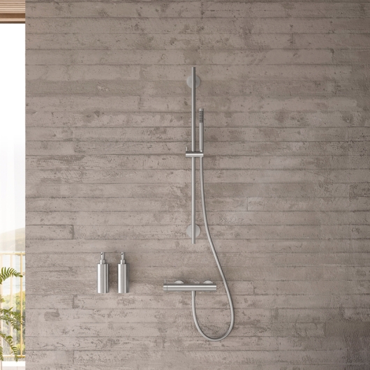 ![]()  | 17.965900.1.09 LIVING SPA Dusch-Wandstange seven Länge 900 mm, Ø 20 mm Rosetten Ø 70 mm Konusgleiter stufenlos höhenverstell- und neigbar Formgebung rund Oberfläche Edelstahl matt gebürstet UVP 383,00 € zzgl. MwSt.