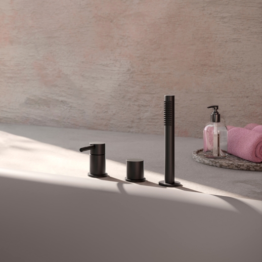 ![]() | 18.022025.2.12 DEEP BLACK Dreiloch-Wannenarmatur für Fliesen- oder Wannenrandmontage Flexschlauch mit 1/2" IG zum Anschluss einer externen Wannenbefüllung LOGIC-SoftEmotion-Keramikkartusche mechanischer Drehumsteller ausziehbare Stabhandbrause Nylon-Brauseschlauch eigensicher gegen Rückfließen inklusive Befestigungsmaterial erforderliche Lochbohrungen 35 mm Oberfläche Schwarz matt UVP 855,00 € zzgl. MwSt.
