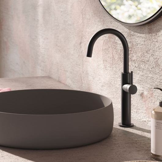 ![]() | 18.023410.2.12 DEEP BLACK Waschtisch-Einlochbatterie slim L-Size mit seitlicher Betätigung mit erhöhtem Schaft für freistehende Waschschalen mit PUSH-Ablaufventil mit/ohne Staufunktion Auslauf schwenkbar 360° LOGIC-SoftEmotion-Keramikkartusche Neoperl-Sparperlator LOGIC-FiX-Befestigung Ausladung 127 mm Höhe Auslaufunterkante 223 mm Anschlussschläuche / DVGW zertifiziert erforderliche Lochbohrung 35 mm Oberfläche Schwarz matt UVP 550,00 € zzgl. MwSt.