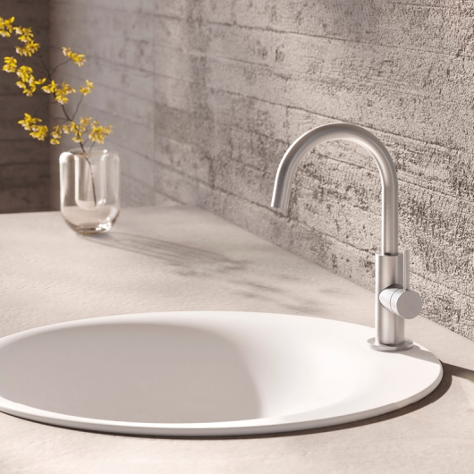 ![]() | 18.023420.1.09 DEEP iX Waschtisch-Einlochbatterie slim M-Size mit seitlicher Betätigung ohne Ablaufgarnitur Auslauf schwenkbar 360° LOGIC-SoftEmotion-Keramikkartusche Neoperl-Sparperlator LOGIC-FiX-Befestigung Ausladung 127 mm Höhe Auslaufunterkante 155 mm Anschlussschläuche / DVGW zertifiziert erforderliche Lochbohrung 35 mm Oberfläche Edelstahl matt gebürstet UVP 488,00 € zzgl. MwSt.