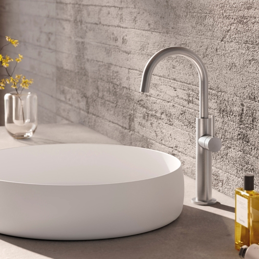 ![]() | 18.023420.2.09 DEEP iX Waschtisch-Einlochbatterie slim L-Size mit seitlicher Betätigung mit erhöhtem Schaft für freistehende Waschschalen ohne Ablaufgarnitur Auslauf schwenkbar 360° LOGIC-SoftEmotion-Keramikkartusche Neoperl-Sparperlator LOGIC-FiX-Befestigung Ausladung 127 mm Höhe Auslaufunterkante 223 mm Anschlussschläuche / DVGW zertifiziert erforderliche Lochbohrung 35 mm Oberfläche Edelstahl matt gebürstet UVP 545,00 € zzgl. MwSt.