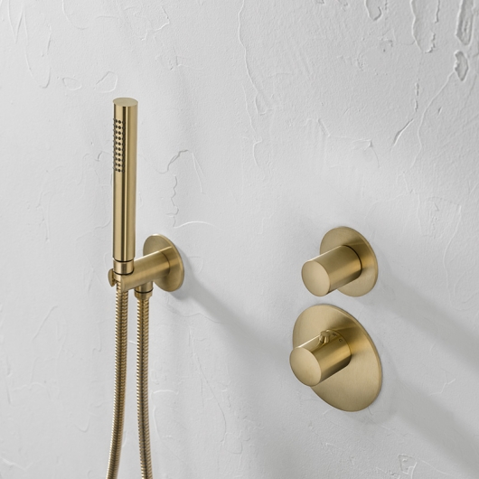 ![]() | 21.914000.1.41 LIVING SPA Wannenset seven Stabhandbrause Durchflussmenge ca. 12 l/min bei 3 bar Konuswandhalter starr Formgebung rund Rosette Ø 70 mm Brauseschlauch 1/2” x 1250 mm x 1/2” Drehkonus Oberfläche Edelstahl PVD Brass Steel UVP 514,00 € zzgl. MwSt.