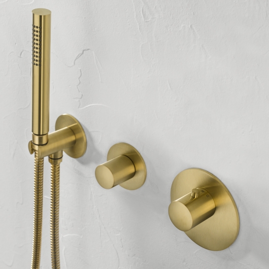 ![]() | 21.914400.1.41 LIVING SPA Wannenset seven Stabhandbrause Durchflussmenge ca. 12 l/min bei 3 bar Konuswandhalter starr mit integriertem Brauseanschlussbogen Formgebung rund Rosette Ø 70 mm Brauseschlauch 1/2” x 1250 mm x 1/2” Drehkonus Oberfläche Edelstahl PVD Brass Steel UVP 630,00 € zzgl. MwSt.