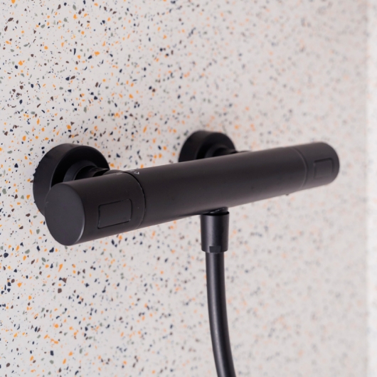 ![]() | 23.131100.1.12 LIVING Thermostat-Brausebatterie Aufputz Brauseanschluss 1/2" CoolBody Armaturenkörper LOGIC-EasyClean-Thermoelement Heißwassersperre 38°C Schnellschluss-Keramikventil 90° eigensicher gegen Rückfließen schraubbare Rosetten S-Anschlüsse 1/2" / 3/4" Durchflussmenge ca. 22 l/min bei 3 bar Oberfläche Schwarz matt UVP 346,00 € zzgl. MwSt.