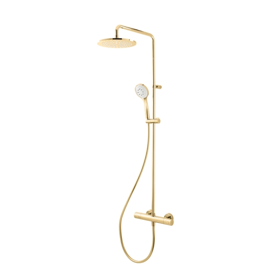 ![]() | 30.988525.1.03 LIVING SPA Duschsäule mit Thermostat Gesamthöhe 1201 mm (nicht kürzbar) Ausladung Brausearm 350 mm (nicht schwenkbar) Thermostatbatterie mit Ab-/Umstellventil CoolBody Armaturenkörper LOGIC-Easyclean Thermostatkartusche Heißwassersperre 38°C schraubbare Rosetten S-Anschlüsse 1/2" / 3/4" Slim-Regenbrause Ø 250 mm Handbrause Ø 100 mm Multifunktion Clean-Effect Konusgleiter stufenlos höhenverstell- und neigbar Kunststoff-Brauseschlauch 1/2" x 1600 mm x 1/2" mit brauseseitigem Drehkonus mit Befestigungsmaterial zur Aufputz-Wandmontage Durchflussmenge: Regenbrause ca. 10-14 l/min bei 3 bar Stabhandbrause ca. 15 l/min bei 3 bar Oberfläche PVD Gold UVP 1.301,00 € zzgl. MwSt.