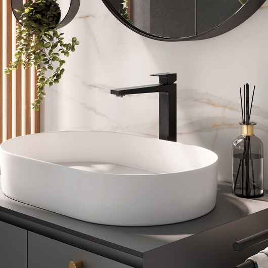 ![]() | 36.220320.2.12 CEO BLACK Waschtisch-Einlochbatterie XL-Size mit erhöhtem Schaft für freistehende Waschschalen ohne Ablaufgarnitur LOGIC-SoftEmotion-Keramikkartusche Neoperl-Sparperlator LOGIC-FiX-Schnellbefestigung Ausladung 181 mm Höhe Auslaufunterkante 236 mm Anschlussschläuche / DVGW zertifiziert Durchflussmenge ca. 7 l/min bei 3 bar erforderliche Lochbohrung 35 mm Oberfläche Schwarz matt UVP 514,00 € zzgl. MwSt.