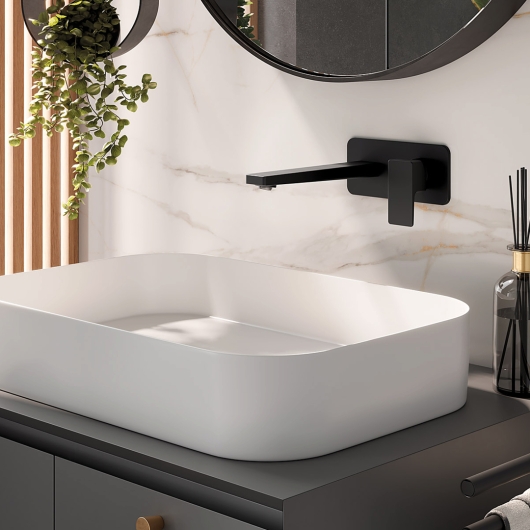 ![]() | 36.220957.2.12 CEO BLACK Waschtisch-Unterputzbatterie Farbset Endmontageset zum Aufsatz auf LOGIC PLUS Wand-Waschtisch Universal-Einbaukörper 11.740000.1.09 Montage des Auslaufs wahlweise links / rechts / unten möglich LOGIC-SoftEmotion-Keramikkartusche Neoperl-Perlator Durchlaufende Armaturenblende 190 mm x 70 mm Ausladung 240 mm Durchflussmenge ca. 7 l/min bei 3 bar Oberfläche Schwarz matt UVP 696,00 € zzgl. MwSt.