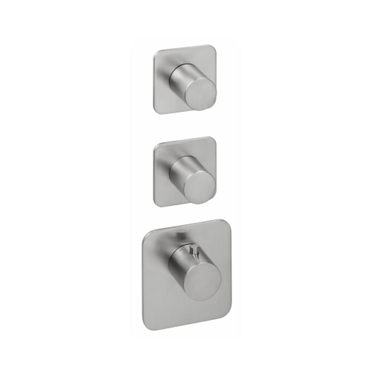 ![]() | 36.522015.1.14 LOGIC XL 2 Farbset Endmontageset zum Aufsatz auf LOGIC XL 2 Thermostat Einbaukörper für 2 Verbraucher Ventilblenden soft 70 mm x 70 mm Thermostatblende soft 110 mm x 100 mm Bediengriffe rund Oberfläche Edelstahlfinish UVP 1.125,00 € zzgl. MwSt.