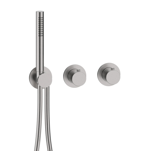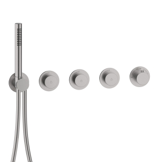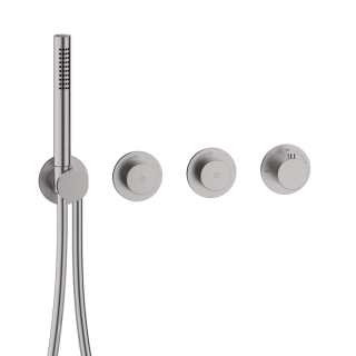![]() | 70.701001.1.09 MODUL7 Thermostat für 1 Verbraucher mit Stabhandbrause bestehend aus: Thermostat, Mengenventil, Brausehalterset LOGIC-Thermostatkartusche Heißwassersperre 38°C stufenlose Mengenregulierung MODUL7 Brauseschlauch 1500 mm mit Drehkonus Edelstahl Stabhandbrause mit Clean-Effect Edelstahl Bediengriffe Edelstahl Modulblenden Ø 70 mm eigensicher gegen Rückfließen Oberfläche Edelstahl matt gebürstet UVP 1.159,00 € zzgl. MwSt.