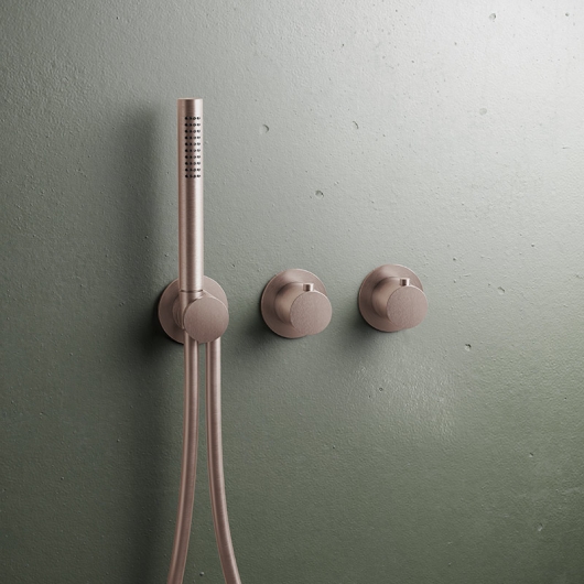 ![]() | 70.701001.1.39 MODUL7 Thermostat für 1 Verbraucher mit Stabhandbrause bestehend aus: Thermostat, Mengenventil, Brausehalterset LOGIC-Thermostatkartusche Heißwassersperre 38°C stufenlose Mengenregulierung MODUL7 Brauseschlauch 1500 mm mit Drehkonus Edelstahl Stabhandbrause mit Clean-Effect Edelstahl Bediengriffe Edelstahl Modulblenden Ø 70 mm eigensicher gegen Rückfließen Oberfläche PVD Copper Steel UVP 1.416,00 € zzgl. MwSt.