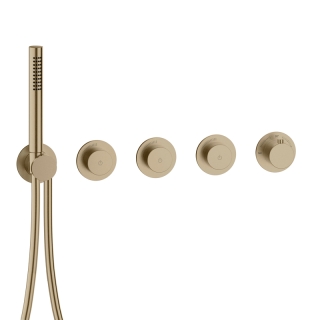 ![]() | 70.701001.1.41 MODUL7 Thermostat für 1 Verbraucher mit Stabhandbrause bestehend aus: Thermostat, Mengenventil, Brausehalterset LOGIC-Thermostatkartusche Heißwassersperre 38°C stufenlose Mengenregulierung MODUL7 Brauseschlauch 1500 mm mit Drehkonus Edelstahl Stabhandbrause mit Clean-Effect Edelstahl Bediengriffe Edelstahl Modulblenden Ø 70 mm eigensicher gegen Rückfließen Oberfläche PVD Brass Steel UVP 1.416,00 € zzgl. MwSt.