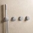 Variante Oberfläche: 70.702003.1.09MODUL7 PUSH Thermostat für 2 Verbraucher mit Stabhandbrause 70.702003.1.01Chrom 70.702003.1.03PVD Gold 70.702003.1.07Weiß matt 70.702003.1.08PVD Absolute Black 70.702003.1.12Schwarz matt 70.702003.1.39PVD Copper Steel 70.702003.1.40PVD Black Steel 70.702003.1.41PVD Brass Steel |