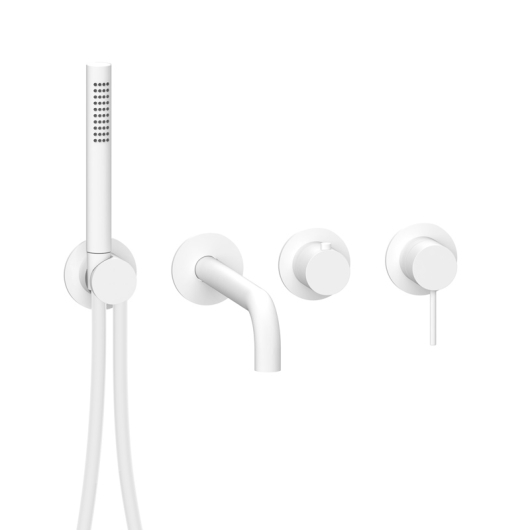 ![]() | 70.702012.1.07 MODUL7 Hebelmischer für 2 Verbraucher mit Wandauslauf und Stabhandbrause bestehend aus: Hebelmischer, Umstellventil, Wandauslauf, Brausehalterset LOGIC-SoftEmotion-Keramikkartusche keramischer 2 Wege-Umsteller stufenlose Mengenregulierung Ausladung Wandauslauf 240 mm MODUL7 Brauseschlauch 1500 mm mit Drehkonus Messing Stabhandbrause mit Clean-Effect Messing Bediengriffe Messing Modulblenden Ø 70 mm eigensicher gegen Rückfließen Oberfläche Weiß matt UVP 948,00 € zzgl. MwSt.