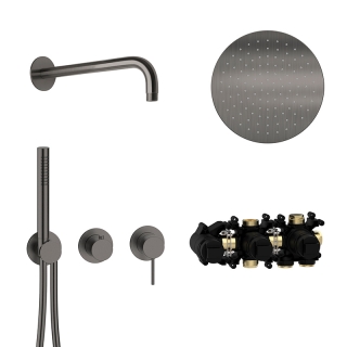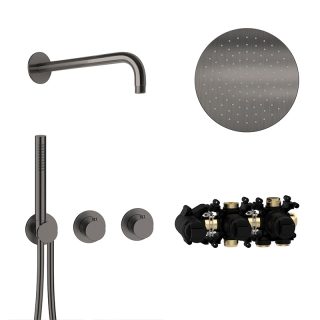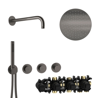 ![]() | 70.702711.1.40 MODUL7 Thermostat-Set T-RB250 mit Regenbrause und Stabhandbrause 70.720001.1.09 MODUL7 Thermostat-Einbaukörper - für 2 Verbraucher - Einbautoleranz 60 - 90 mm 70.702001.1.40 MODUL7 Thermostat-Farbset für 2 Verbraucher - drehbare Thermostatkartusche zur Regelung des Temperaturbereichs von 20°C-55°C - manuell entriegelbare Heißwassersperre bei 38°C als Verbrühschutz - keramischer 2 Wege-Umsteller - leichtgängige und stufenlose Mengenregulierung mit geringem Bedienradius - Brauseanschlussbogen mit verdecktem Schlauchanschluss - MODUL7-Brauseschlauch 1500 mm mit Drehkonus - 1-strahlige Messing-Stabhandbrause - Edelstahl Bediengriffe - Edelstahl Modulblende Ø 70 mm 21.960350.1.40 LIVING SPA Wandarm 350 mm - Edelstahlblende Ø 70 mm 11.600250.1.40 LIVING SPA Regenbrause Ø 250 mm - mit Clean-Effect Oberfläche PVD Black Steel UVP 3.126,00 € zzgl. MwSt.