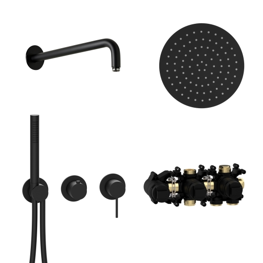 ![]() | 70.702712.1.12 MODUL7 Hebelmischer-Set H-RB250 mit Regenbrause und Stabhandbrause 70.720002.1.09 MODUL7 Hebelmischer-Einbaukörper _für 2 Verbraucher _Einbautoleranz 60 - 90 mm 70.702002.1.12 MODUL7 Hebelmischer-Farbset für 2 Verbraucher _leichtgänige LOGIC-SoftEmotion Keramikkartusche _stufenlose Mengen- und Temperaturregulierung _keramischer 2 Wege-Umsteller _Brauseanschlussbogen mit verdecktem Schlauchanschluss _MODUL7-Brauseschlauch 1500 mm mit Drehkonus _1-strahlige Messing-Stabhandbrause _Messing Bediengriffe _Messing Modulblenden Ø 70 mm 23.960350.1.12 LIVING SPA Wandarm 350 mm _Messingblende Ø 70 mm 23.600250.1.12 LIVING SPA Slim-Regenbrause Ø 250 mm _mit Clean-Effect Oberfläche Schwarz matt UVP 1.854,00 € zzgl. MwSt.