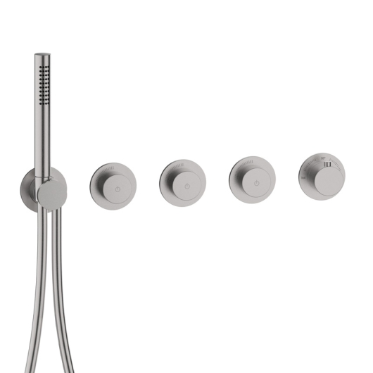 Variante Oberfläche: 70.703003.1.09MODUL7 PUSH Thermostat für 3 Verbraucher mit Stabhandbrause 70.703003.1.01Chrom 70.703003.1.03PVD Gold 70.703003.1.07Weiß matt 70.703003.1.08PVD Absolute Black 70.703003.1.12Schwarz matt 70.703003.1.39PVD Copper Steel 70.703003.1.40PVD Black Steel 70.703003.1.41PVD Brass Steel |