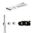 ![]() | 70.703711.1.09 MODUL7 Thermostat-Set T-MU2 mit Wand-Regenbrause Multifunktion 2 und Stabhandbrause 70.730001.1.09 MODUL7 Thermostat-Einbaukörper _für 3 Verbraucher _Einbautoleranz 60 - 90 mm 70.702001.1.09 MODUL7 Thermostat-Farbset für 3 Verbraucher _drehbare Thermostatkartusche zur Regelung des Temperaturbereichs von 20°C-55°C _manuell entriegelbare Heißwassersperre bei 38°C als Verbrühschutz _keramischer 3 Wege-Umsteller _leichtgängige und stufenlose Mengenregulierung mit geringem Bedienradius _Brauseanschlussbogen mit verdecktem Schlauchanschluss _MODUL7-Brauseschlauch 1500 mm mit Drehkonus _1-strahlige Edelstahl-Stabhandbrause _Edelstahl Bediengriffe _Edelstahl Modulblenden Ø 70 mm 11.661600.2.09 LIVING SPA Wand-Regenbrause 537x165mm Multi 2 _Strahlart: Regen / Schwall _mit Clean-Effect Oberfläche Edelstahl matt gebürstet UVP 3.131,00 € zzgl. MwSt.